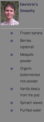 Note: I know smoothies are a drink and can be quick to swollow but it is very important to chew/swirl it around in the mouth so the enzymes from our saliva mix in with the drink. This aids our digestion. It is also important to drink smoothies immediately after you make it so the nutrients are fresh. Particularly with fruit and vegies for once they are exposed to oxygen the vitamins start to reduce. Hence there is no point making a weeks worth and storing it the fridge. Secondly it is not advisable to add medicinal powders to your smoothy unless you discuss it with your practitioner first. What is right for one person may not be right for another.